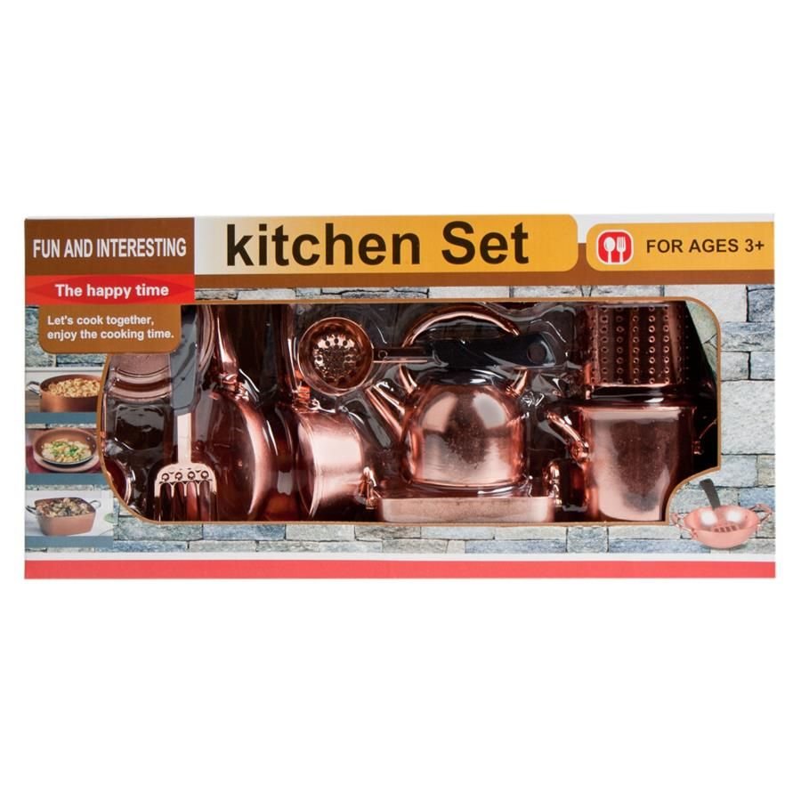 Výhody produktu: dítě se může naučit základní domácí činnosti, jako je vaření, nádobí ve stylu starého měděného nádobí. Příprava jídel pomocí hrnců a kuchyňských doplňků MEGA CREATIVE je čistá radost. Můžete také svěřit svému dítěti úkol umýt nádobí po jídle - pokud to dokáže, určitě to udělá s úsměvem na tváři! Sada obsahuje: konvici, podnos, pánev, pánev, hrnec, cedník, víko, naběračku, špachtle, lžíci na těstoviny a štěrbinovou lžičku. Rozměry / ??hmotnost / baterie: rozměry produktu (délka x výška x hloubka) [cm]: 47x22x10 rozměry balení (délka x výška x hloubka) [cm]: 47x22x10 hmotnost produktu bez obalu [kg]: 0, 67 kg, hmotnost výrobek v balení [kg]: 1,15 kg, nevyžaduje baterie. Výrobek je určen pro děti od 3 let. Baleno v krabici s oknem.