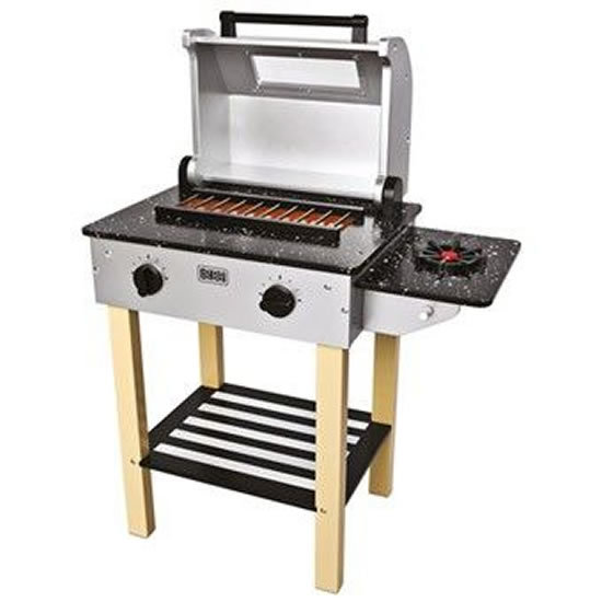 Velmi kvalitní a věrná kopie zahradního grilu umožní vašim dětem hrát si na opravdové grilování. Gril je vyroben ze dřeva a obsahuje i příslušenství nutné k dětskému grilování.