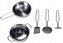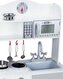 Knoflíky hořáku kliknou, dveře trouby a mikrovlnné dveře se zavírají na magnet a pro přípravu imaginárních pokrmů slouží kovové hrnce. Díky poličkám a závěsům na nádobí bude v kuchyni vždy uklizeno.
