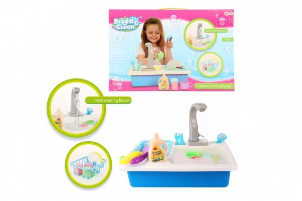 Dřez plast s kohoutkem na baterie s doplňky v krabici 41x28x11cm
