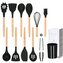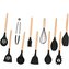 Kuchyňská sada 12ks nástrojů v praktickém stojanu. Velmi odolný silikonový materiál, bambusové rukojeti. Nepoškrábe nádobí, má nepřilnavý povrch, snadno se udržuje. Možnost uchycení na závěsnou lištu, vhodné i do myčky nádobí. Všechny potřebné nástroje pro vaření a pečení.