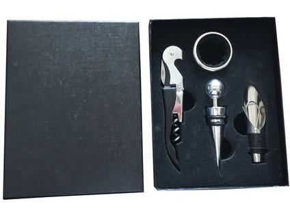 materiál: Zn, ABSČtyřdílná sada obsahuje otvírák na lahve s vývrtkou a nožíkem, uzávěr na lahve, kroužek na hrdlo láhve, nálevku. Baleno v dárkové krabičce.