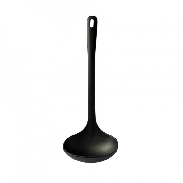 Naběračka je vyrobena z pružného a odolného nylonu, který je šetrný k povrchům nádobí, zejména s nepřilnavou teflonovou vrstvou. Díky tomu se nemusíte obávat oděrek nebo jiných poškození při použití. Navíc disponuje praktickou rukojetí s očkem pro zavěšení, což usnadňuje její skladování a vždy ji máte ihned po ruce.
