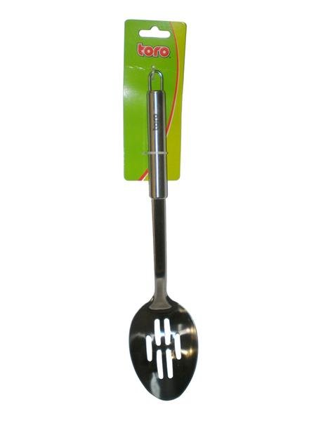 Lžíce na salát je klasikou mezi kuchyňským náčiním, která se používá na přípravu salátu. Tento výrobek je z prvotřídní ušlechtilé oceli a je vhodný do myčky na nádobí. Nerezová rukojeť je uzpůsobena pro zavěšení na závěsnou tyč. Kuchyňské nářadí TORO vytváří ucelenou řadu výrobků. číst celé