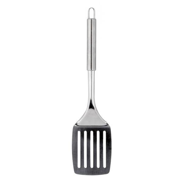 Obracečka děrovaná nerez, délka 34 cm, vyrobena z lesklé nerez oceli, opatřená otvorem pro zavěšení, vhodná do myčky na nádobí. Rozměry - 34 x 8,2 x 2,5 cm. Barva - stříbrná.