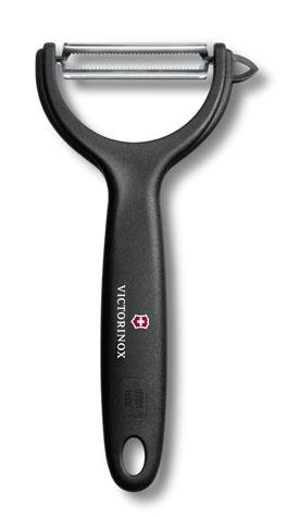 Otočná nerezová škrabka s mikrozoubky a dvojitou čepelí je vhodná například na rajčata nebo kiwi. Pohodlnou práci se škrabkou Vám zajistí ergonomická rukojeť z černého plastu. Kuchyňští pomocníci značky Victorinox jsou při každodenní práci v kuchyni nepostradatelní! Barva černá.