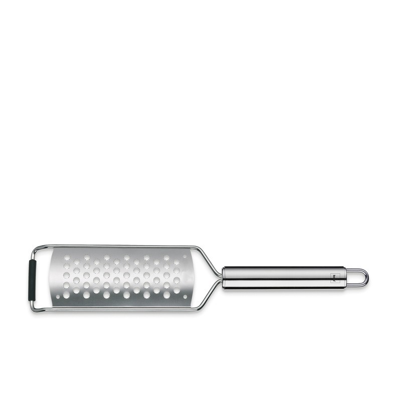 Speciální korunkové struhadlo na strouhání zázvoru, křenu nebo jablek na hrubší kaši. Dá se ale použít i na strouhání čokolády a parmazánu nebo jako struhadlo na citron. Jeho kompaktní tvar s konkávním roštem usnadňuje práci. Korunové struhadlo Rondo je vyrobeno z nerezové oceli o šířce 6,5 cm a délce 32,5 cm. 6mm, nerezová ocel, 32x6,5cm
