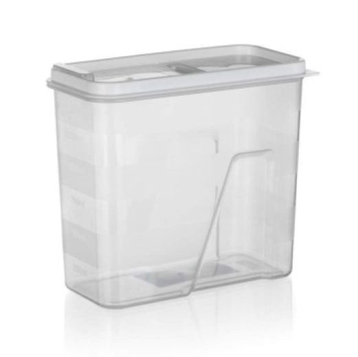 Transparentní plastová dóza CULINARIA o objemu 1,5 litru, s víčkem v bílé barvě. Dóza je praktickým pomocníkem na ukládání těstovin, luštěnin, mouky a jiných potravin. Odměrné rysky na stěně dózy po 250 ml. Rozměry 17,6 x 8,6 x 15,7 cm. Vhodná do myčky nádobí a mikrovlnné trouby. EAN...