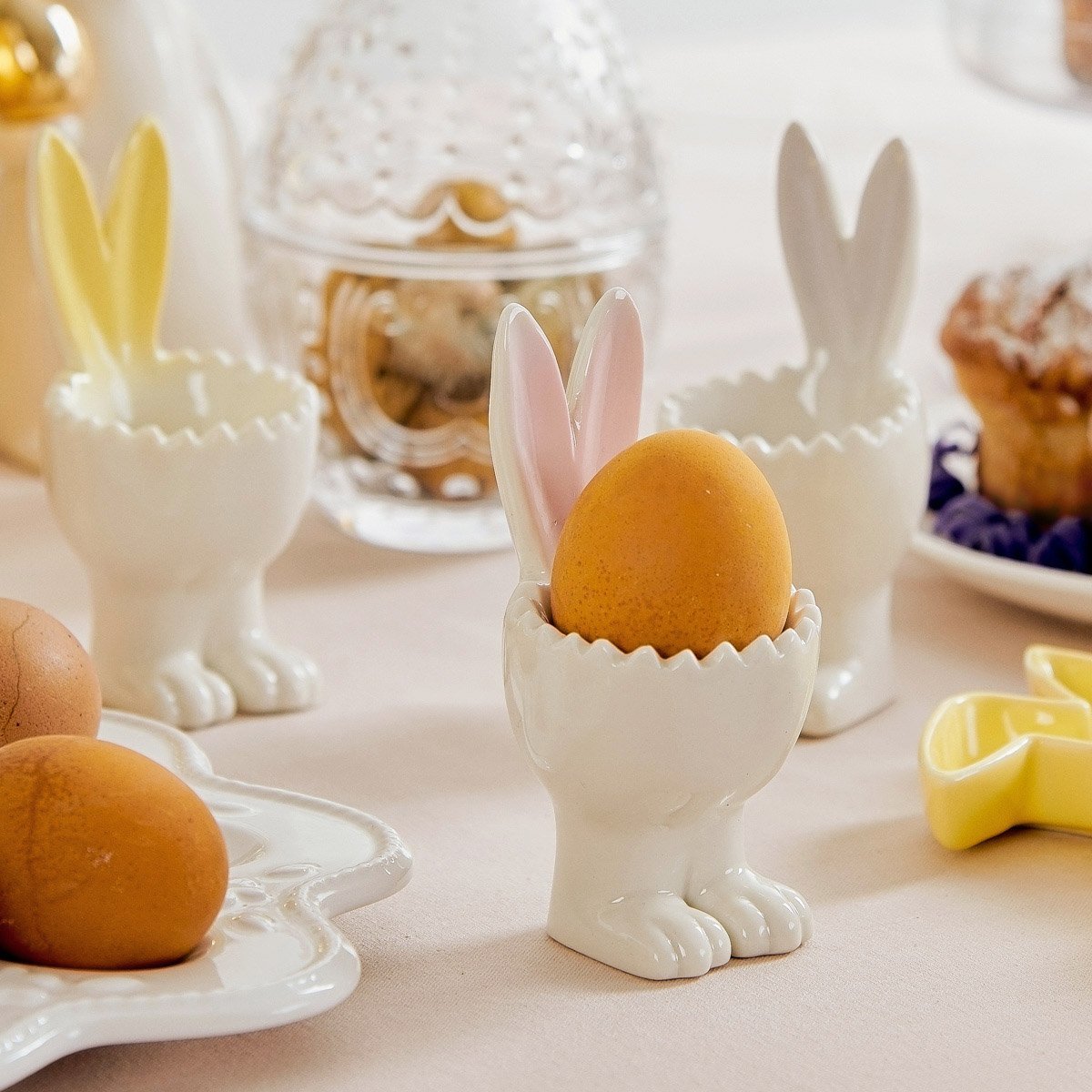 Kalíšek na velikonoční vajíčka se zajíčkem. Vyrobeno z porcelánu, sklo podpírá vařené vajíčko. Přátelská, krásně zpracovaná dekorace, která udělá vaše velikonoční prostírání slavnostnějším.