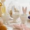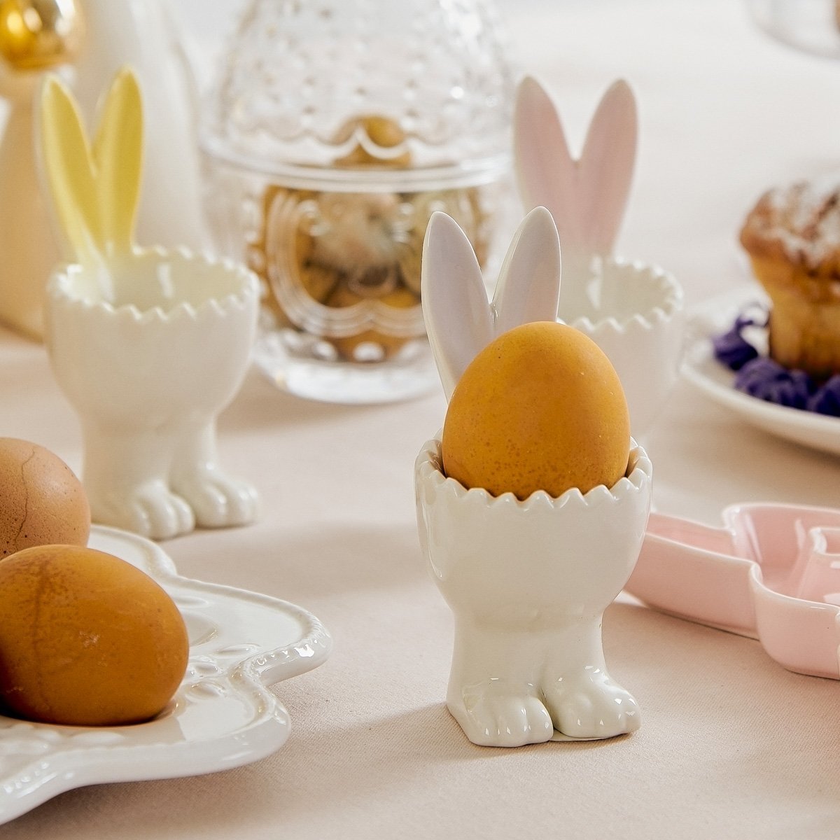 Kalíšek na velikonoční vajíčka se zajíčkem. Vyrobeno z porcelánu, sklo podpírá vařené vajíčko. Přátelská, krásně zpracovaná dekorace, která udělá vaše velikonoční prostírání slavnostnějším.