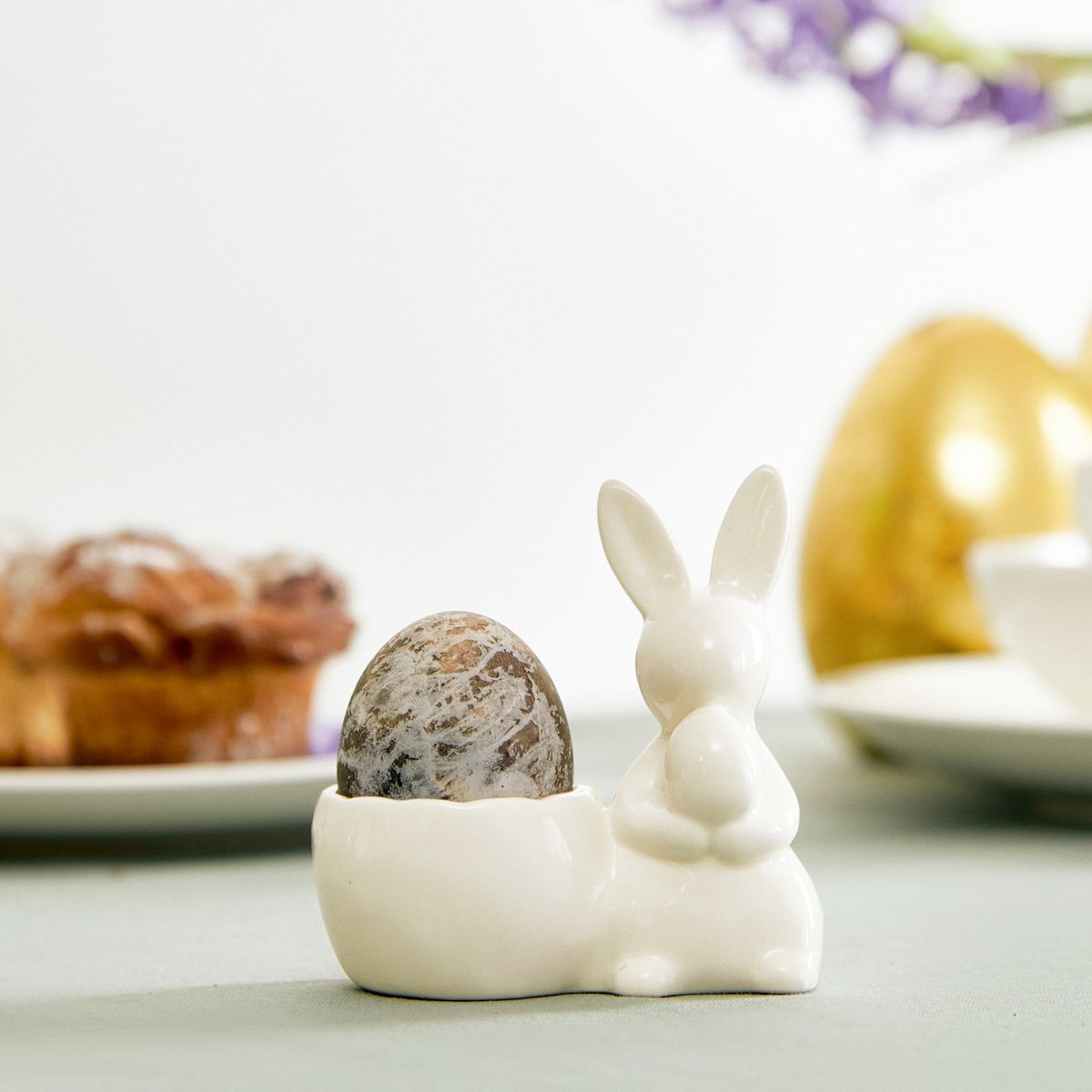 Velikonoční hrneček na vajíčka. Porcelánová figurka zajíce se skleničkou na vajíčka. YAMI HOMLA je funkčním kuchyňským předmětem i velikonoční dekorací.
