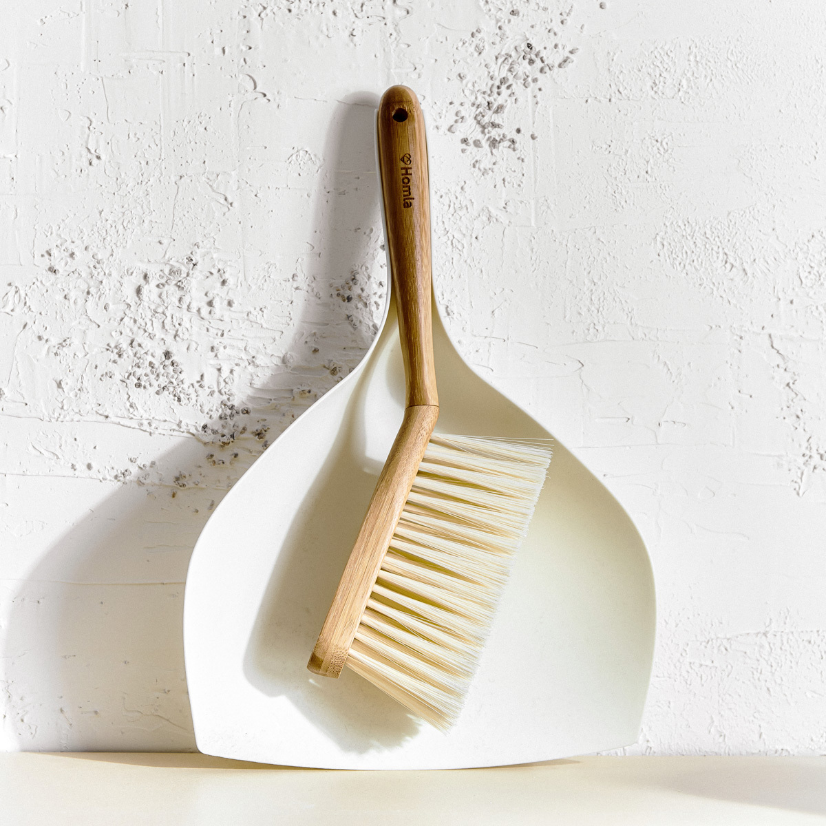Dřevěný smetáček s lopatkou | BAMBOU | bílá | 35x26 cm | 929605 Homla