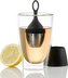 Stredne veľké čajové sitko AdHoc FLOATEA v čiernom prevedení, vhodné na sypané čaje, vyrobené z nerezovej ocele a plastu. Stačí vložiť čaj dovnútra, uzavrieť a nechať lúhovať.