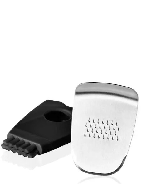 Technické parametre- rozmery 11 x 7 cm- nehrdzavejúca oceľ, tvrdený plast - obsahuje praktickú škrabku na olúpanie šupky- súčasťou aj metlička na očistenie- dizajn AdHoc Design Team