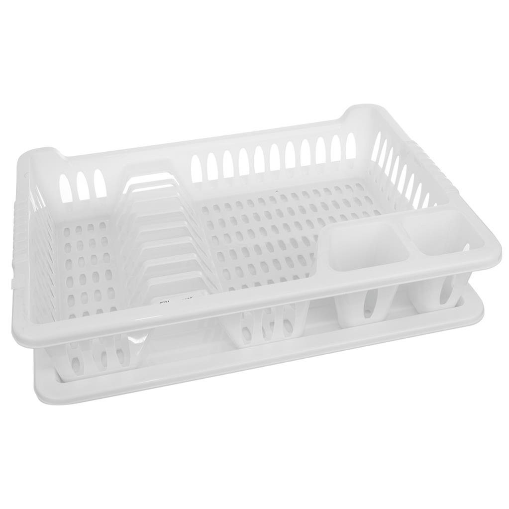 Odkapávač na nádobí s tácem. Členěný - sekce na příbory, talíře a na ostatní nádobí. Materiál: plast. Rozměry: 40x29x8,5 cm. číst celé