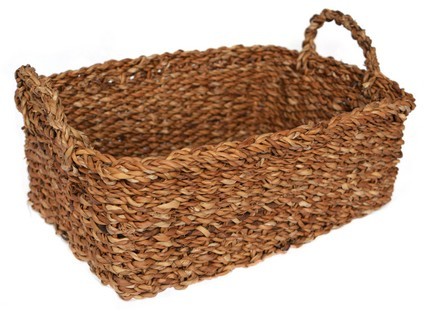 Košík z mořské trávy hranatý s úchyty - střední, 32 x 23 x 13 cm