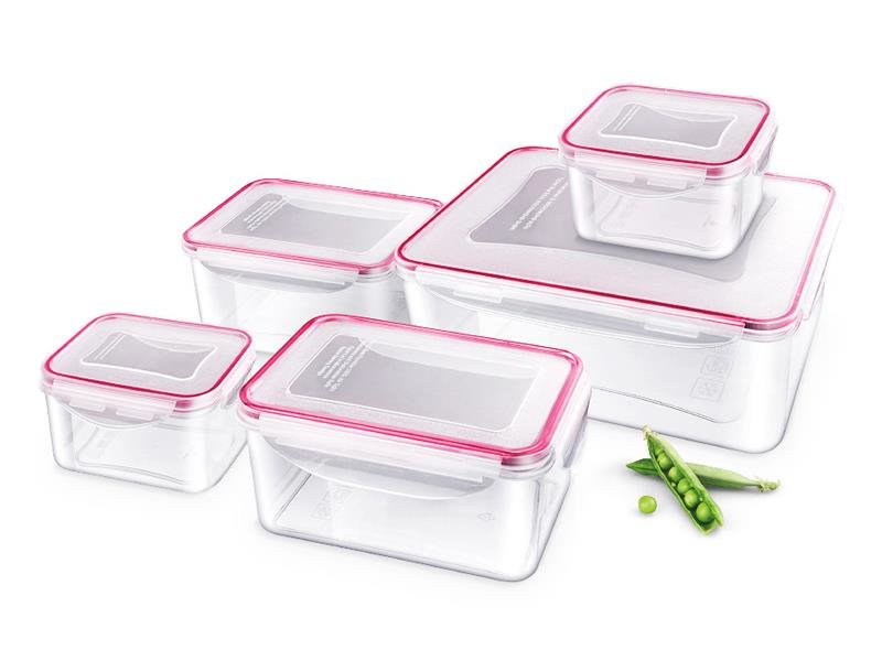 Sada dóz LAMART LT6001 CLIP Praktická a spolehlivá sada dóz pro skladování a přenášení potravin. Vyrobena z odolného plastu s kvalitním silikonovým těsněním víčka - vzduchotěsné a vodotěsné. Potraviny zůstávají déle čerstvé, udržují si své aroma, při manipulaci nevytékají. Vhodné do ledničky, mrazničky, mikrovlnné trouby a do myčky. -20°C až 110°C.