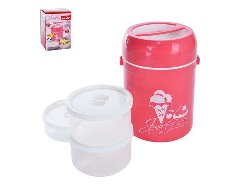 Jogurtovač - připravíte v něm přes noc výborný domácí jogurt z mléka a kvalitního jogurtu a to v množství, které právě potřebujete. Jednoduše připravíte směs z ohřátého mléka a jogurtu (případně dalších přísad), nalijete do jogurtovače a druhý den je jogurt hotový. Díky dvojité stěně jogurtovač vytvoří ideální podmínky pro množení jogurtových kultur v mléce. Můžete vyrobit jogurt buď přímo do nádoby a nebo ve třech dózičkách s víčky - Vaše děti si pak jen otevřou dózičku a mohou mlsat.