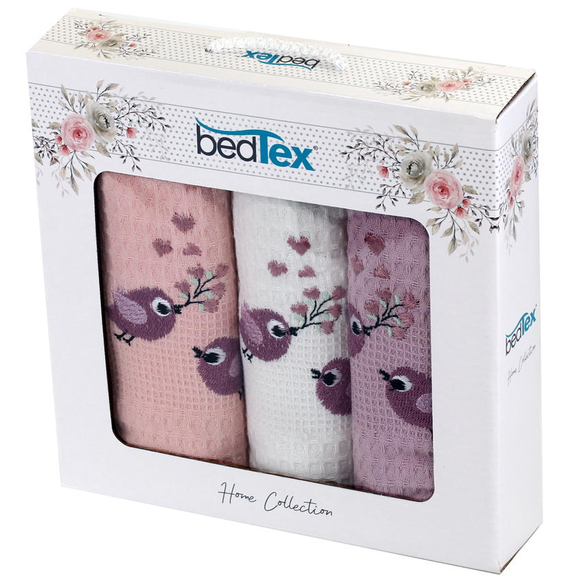 Dárková sada 3 ks vaflových utěrek s malými ptáčky