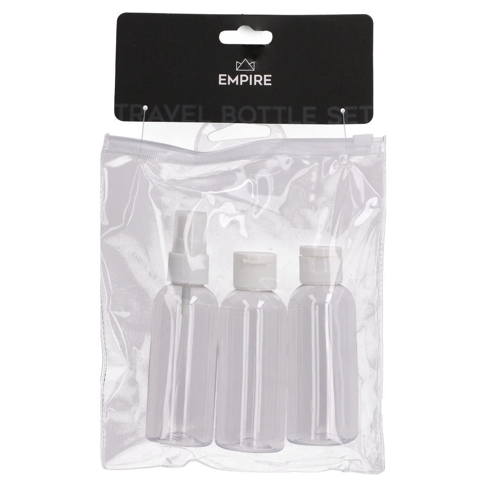 Sada fľaštičiek určená na skladovanie a jednoduchšiu prepravu kozmetických produktov na cestách.Objem: 100 mlMateriál: PlastObsah: 3 fľaše