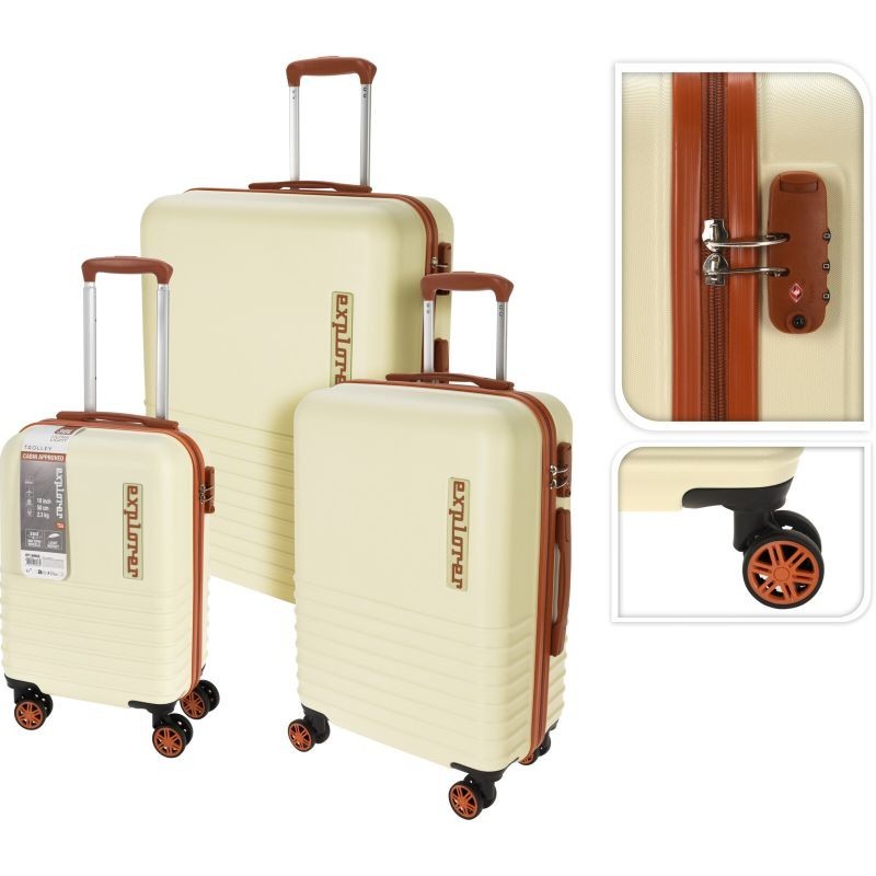 Kufr cestovní na kolečkách sada 3 ks krémová