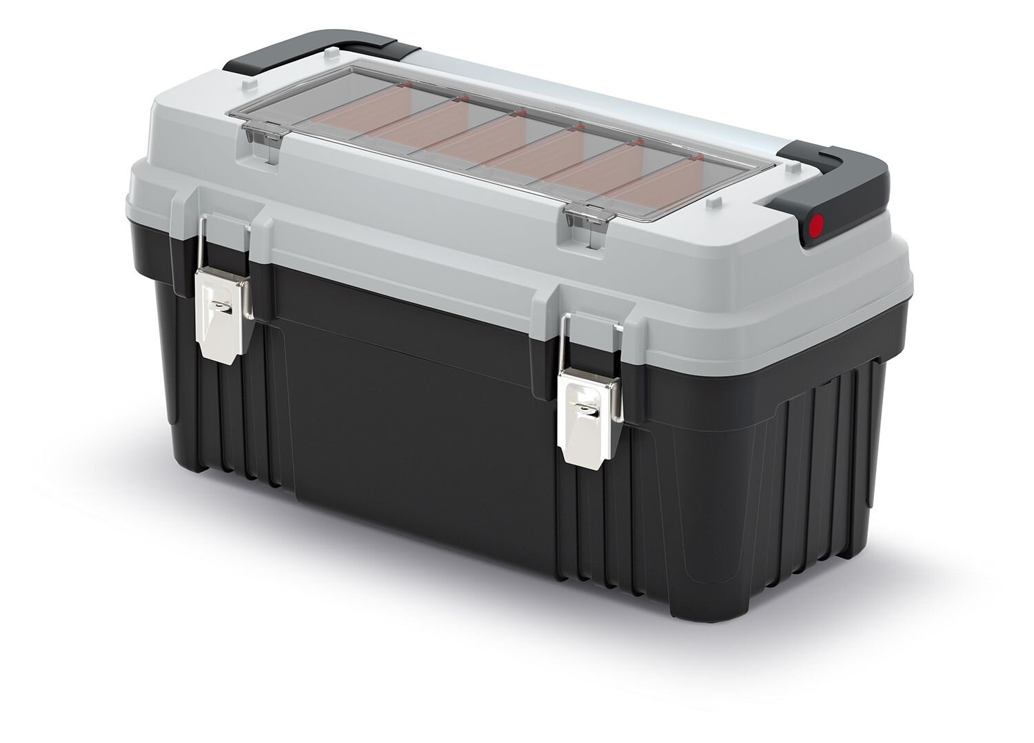 Kufr na nářadí s kov. držadlem a zámky OPTIMA (přepážky) 586x296x305 mm - barva: šedá