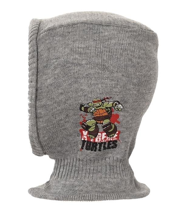 Teplá čepice - kukla s motivem Želvy Ninja. Šedé provedení. Universální velikost, cca 4-10 let. 100 % acrylyc - zdvojený úplet. Oficiální licence.