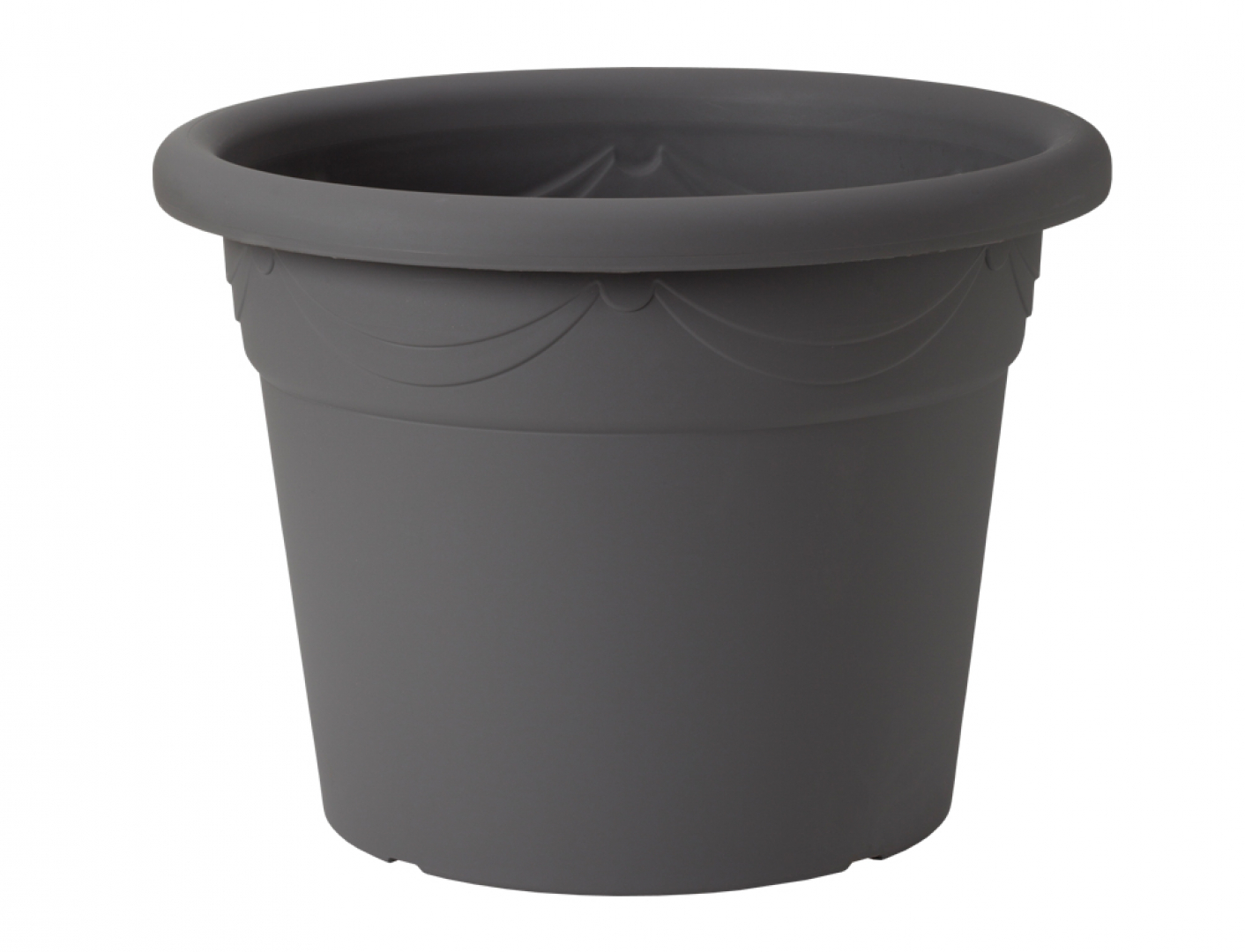 Plastový, matný, hladký květník s dekorativním zdobením pod horním lemem. Horní lem je ohrnutý pro snazší manipulaci. Květník má otvory. Vhodnou podmiskou je NG: 21362an. Rozměry: průměr 35 cm, výška: 26 cm. Barva: antracit. číst celé