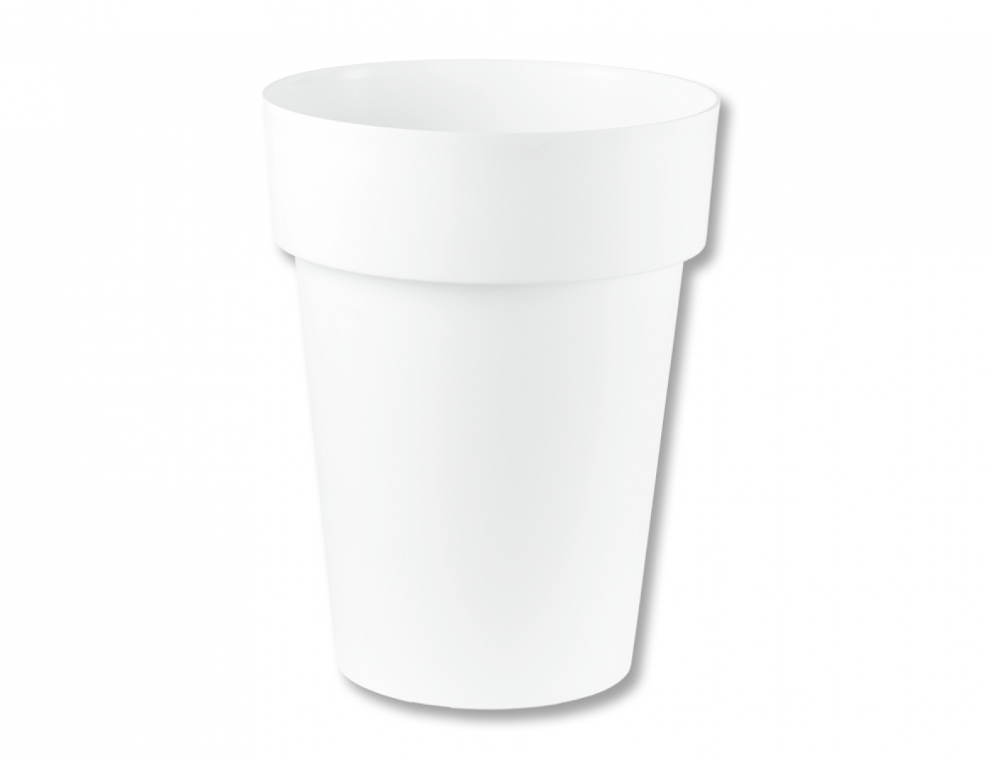 Vysoký kónický plastový obal s širokým horním okrajem. Vhodný do interiéru i venkovních prostor. Barva: bílá. Průměr: 35 cm, výška: 45 cm.
