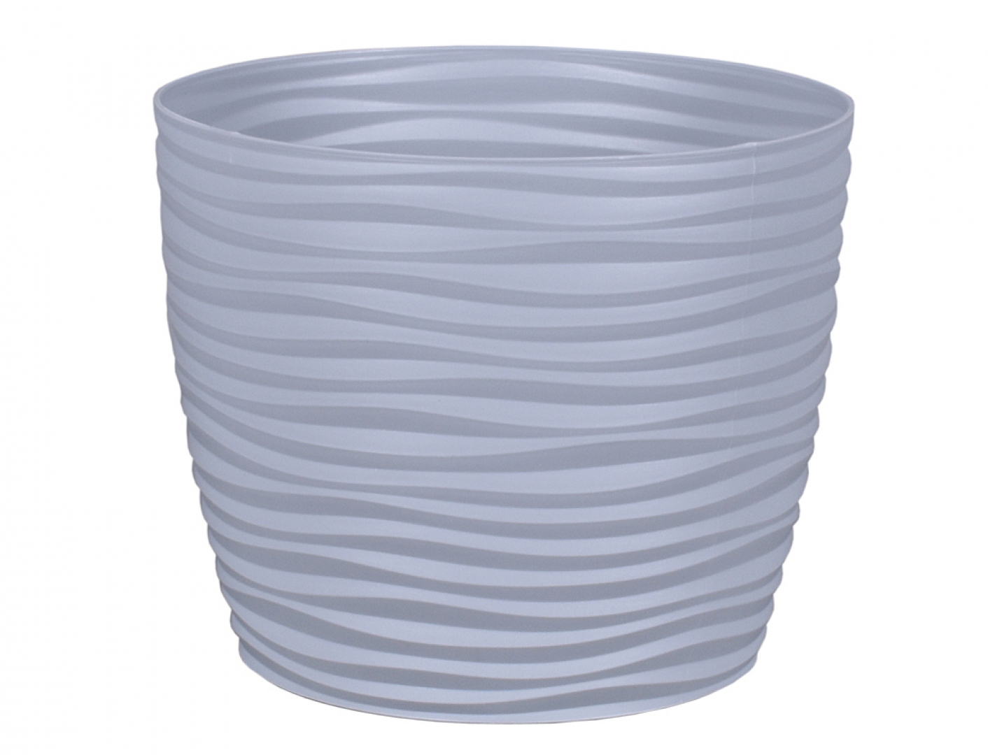 Matný plastový obal na květník s jemnými vlnkami po celém obvodu. Kruhového půdorysu. Neotřelý design a trendy barva osvěží každý interiér. Průměr: 23 cm, výška: 21 cm. Barva: šedá.