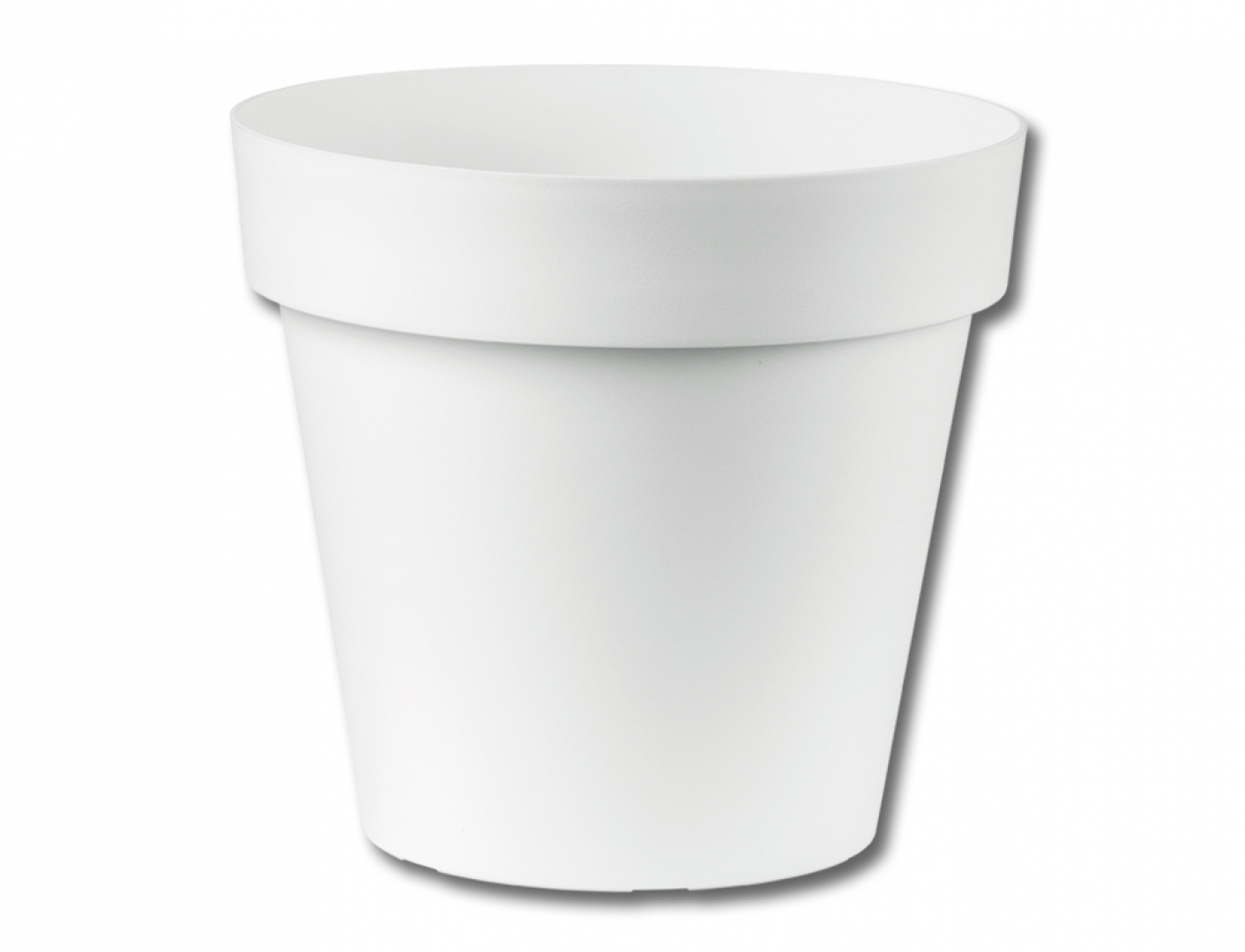 Kónický plastový obal s širokým horním okrajem. Vhodný do interiéru i venkovních prostor. Barva: bílá. Průměr: 40 cm, výška: 36 cm. číst celé