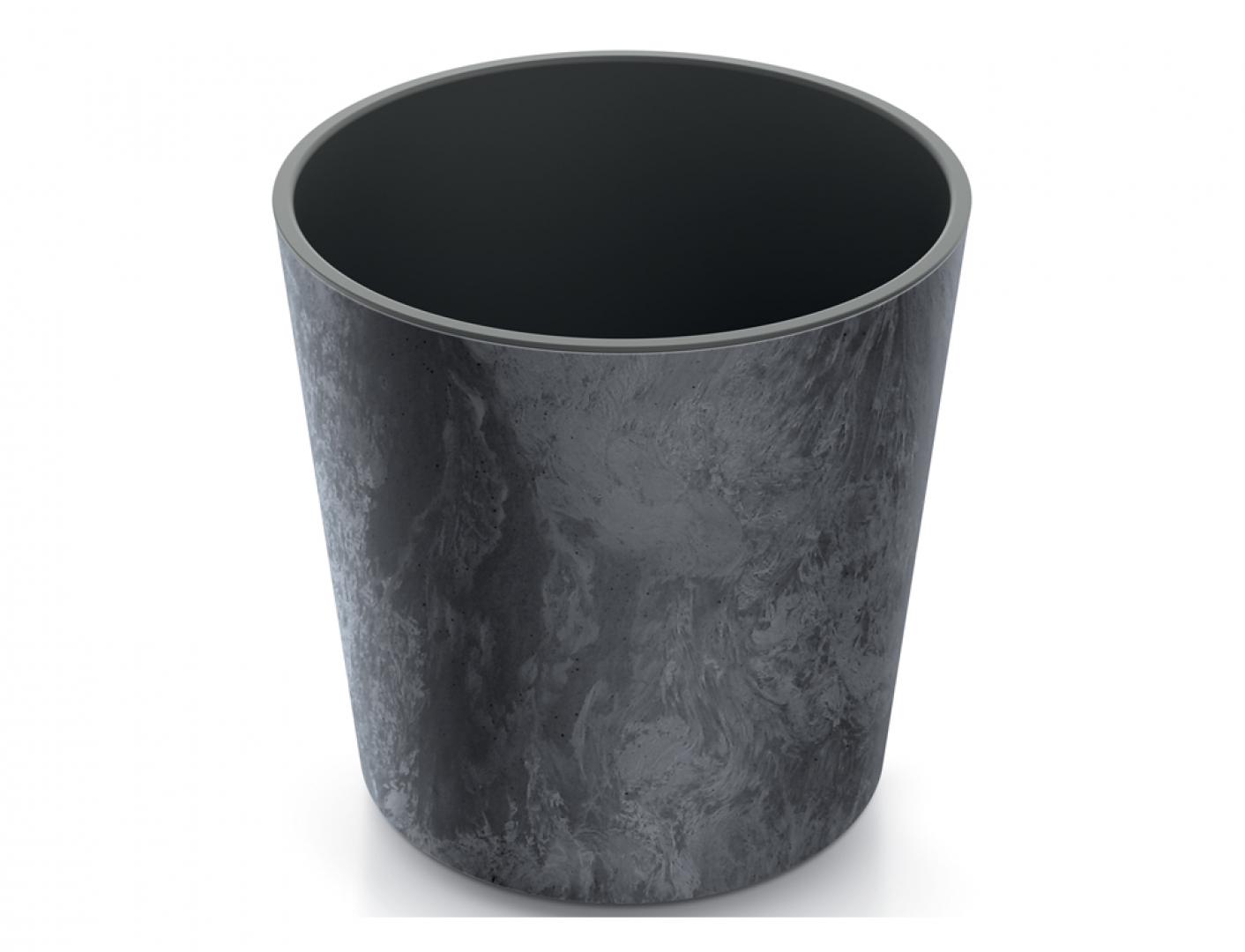 Plastový, hladký obal na květináč. Povrch je matný, v dekoru populární imitace betonu. Kruhového půdorysu. Skvěle doplní zejména minimalistický, moderní prostor. Výrobek je dodáván jako set 2v1, který se skládá ze samotného obalu a vnitřní vložky, která je určena k osázení. Obal je ze 100% vyroben z recyklovaného materiálu a je 100% recyklovatelný (plast, žlutý kontejner). Vhodné do interiéru i exteriéru. UV stabilní. Rozměry: průměr 30cm, výška 30cm. Objem květináče: 17l, objem vnitřní vložky 15l. Barva: antracit.