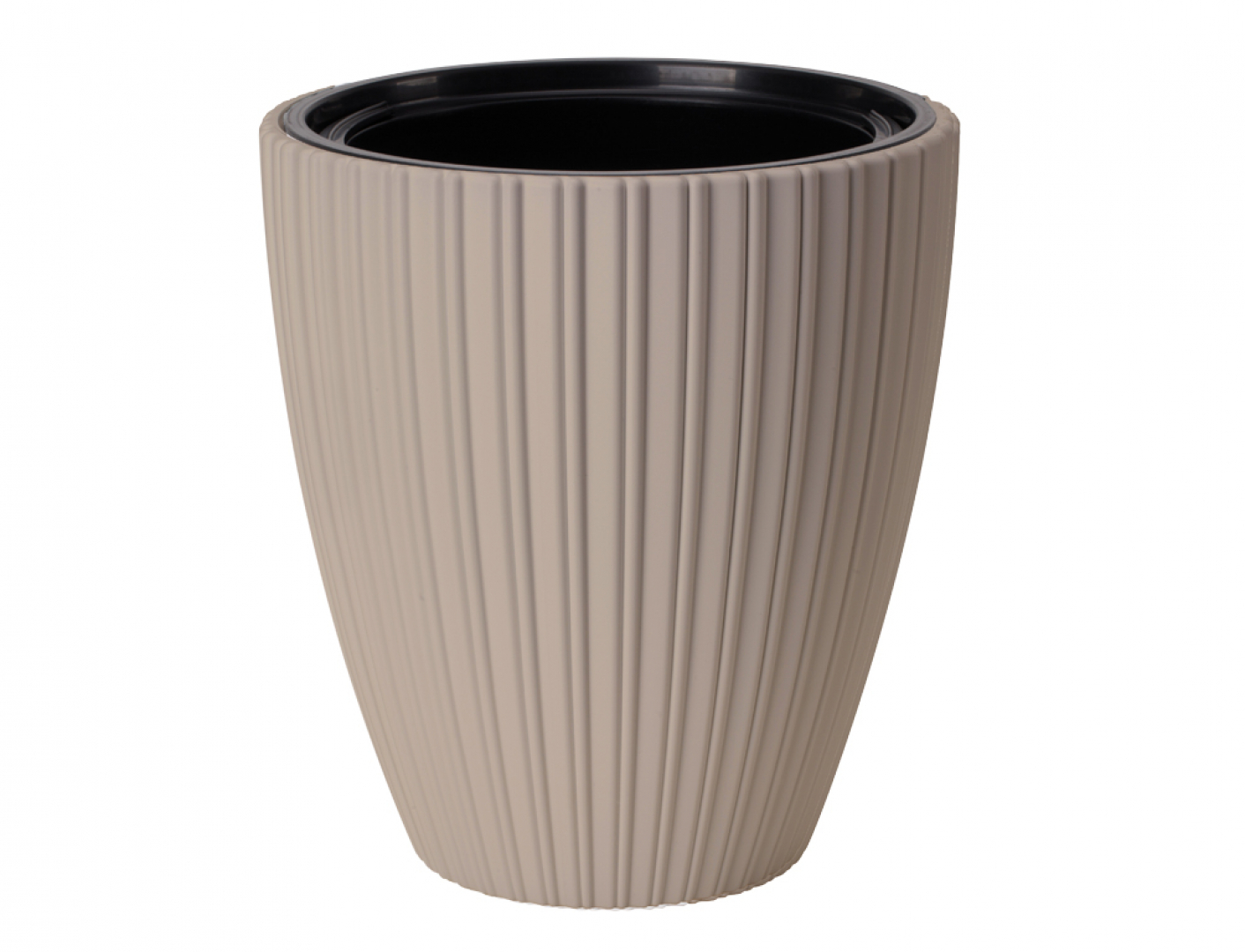 Plastový obal na květník s unikátním vzhledem, zdobený svislými pruhy po celém obvodu. Matný, kruhového půdorysu. Obal obsahuje vnitřní vyjímatelnou vložku. V trendy designu a barvě. UV stabilní, mrazuvzdorný. Vhodný do exteriéru i interiéru. Rozměry: průměr 30 cm, výška 32 cm. Barva: hnědošedá.