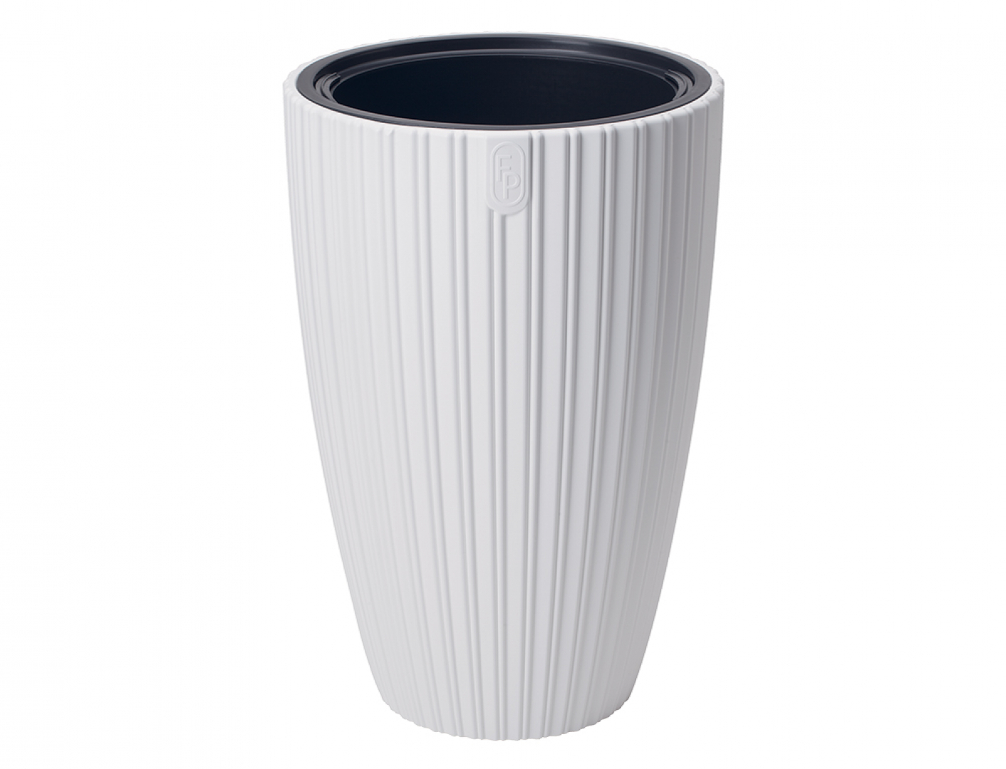 Plastový obal na květník s unikátním vzhledem, zdobený svislými pruhy po celém obvodu. Matný, kruhového půdorysu. Obal obsahuje vnitřní vyjímatelnou vložku. V trendy designu a barvě. UV stabilní, mrazuvzdorný. Vhodný do exteriéru i interiéru. Rozměry: průměr 40 cm, výška 58 cm. Objem obalu: 51l. Objem vyjímatelné vložky: 13,7 l. Barva: bílá.