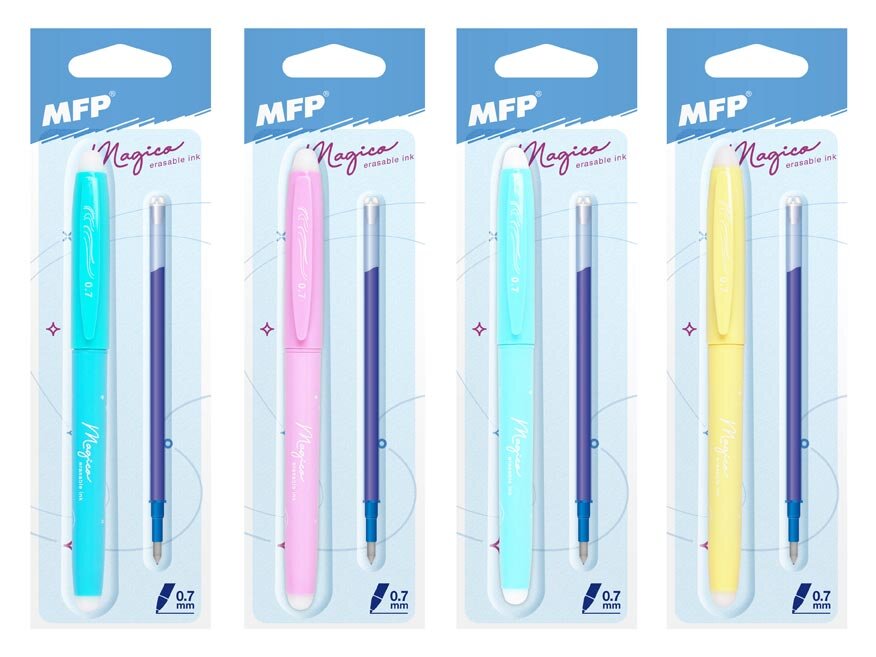 Gumovací kuličkové pero Magico v pastelových barvách s hrotem o tloušťce 0,7 mm je ideální volbou pro každodenní psaní a nabízí také možnost snadného mazání chyb. Speciální inkoust lze jednoduše vymazat pomocí gumy integrované na konci pera, což eliminuje potřebu korektoru. Toto praktické balení obsahuje i náhradní náplň, což prodlužuje životnost pera a zajišťuje, že vám vydrží déle.Skvěle se hodí na psaní poznámek, úkolů, plánování nebo kreativní projekty, kde oceníte možnost snadno opravit chyby.