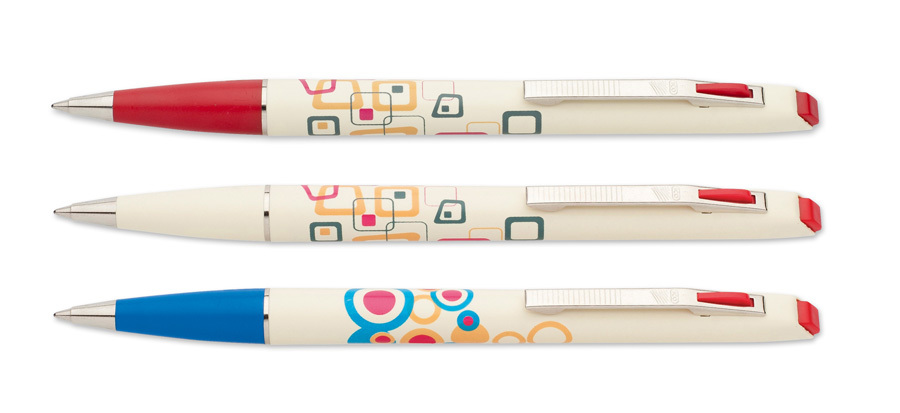 Kuličkové pero se silným hrotem 0,8mm, s kovovým klipem, s vycvakávacím mechanismem. Dodávené v mixu 3 retro barevných kombinací.