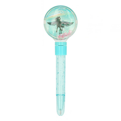 Vytříbený design kuličkového pera s ozdobou ve tvaru těžítka, naplněná tekutinou, třpytkami, barevnými kamínky a funkcí otáčení oblíbené značky Miss Melody, vytváří nejen praktickou psací potřebu, ale rovněž exkluzivní stylový doplněk. Kvalitní modrý inkoust zajišťuje bezproblémové psaní.Jsi-li milovníkem koní, nemůže chybět ve tvé aktovce nebo kabelce.Vhodné pro děti od 5-ti let.