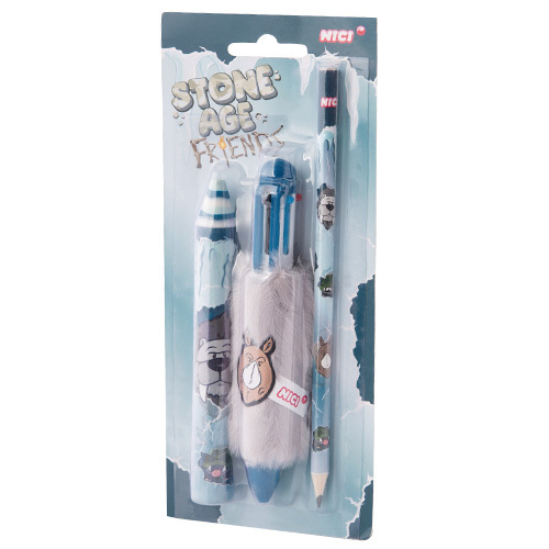 Super cool souprava pro psaní! Neodolatelný psací set pro chlapce v jedinečném designu kolekce Stone Age friends značky Nici.Balení obsahuje gumu ve tvaru tužky, kuličkové péro s vyměnitelnými barvami a tužku. Atraktivní dárek pro všechny školáky!Vhodné pro děti od 3 let. číst celé