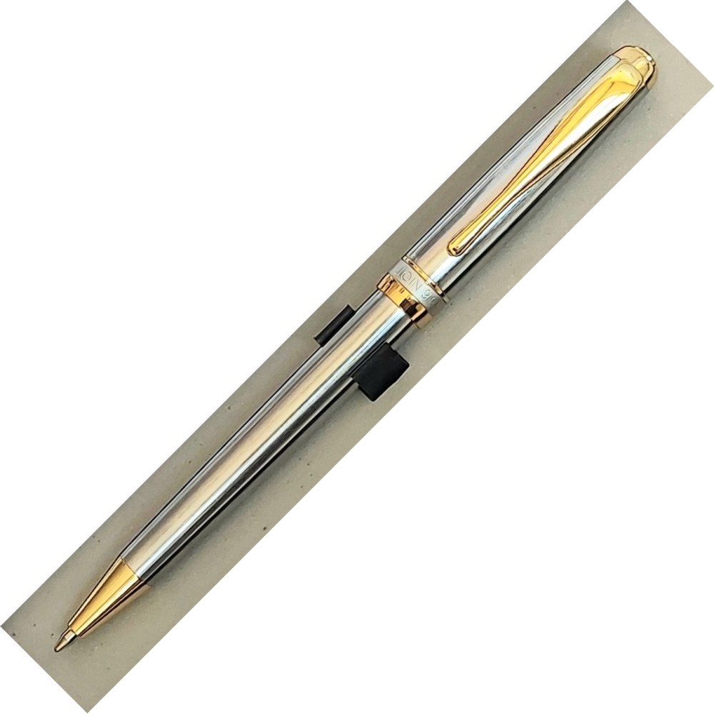 Kovové, strieborné guľôčkové pero s doplnkami v zlatej farbe. číst celé