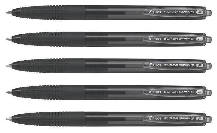 Kuličkova pera "Super Grip G", černá, stiskací mechanismus, 0,22 mm, 5 ks v balení, PILOT