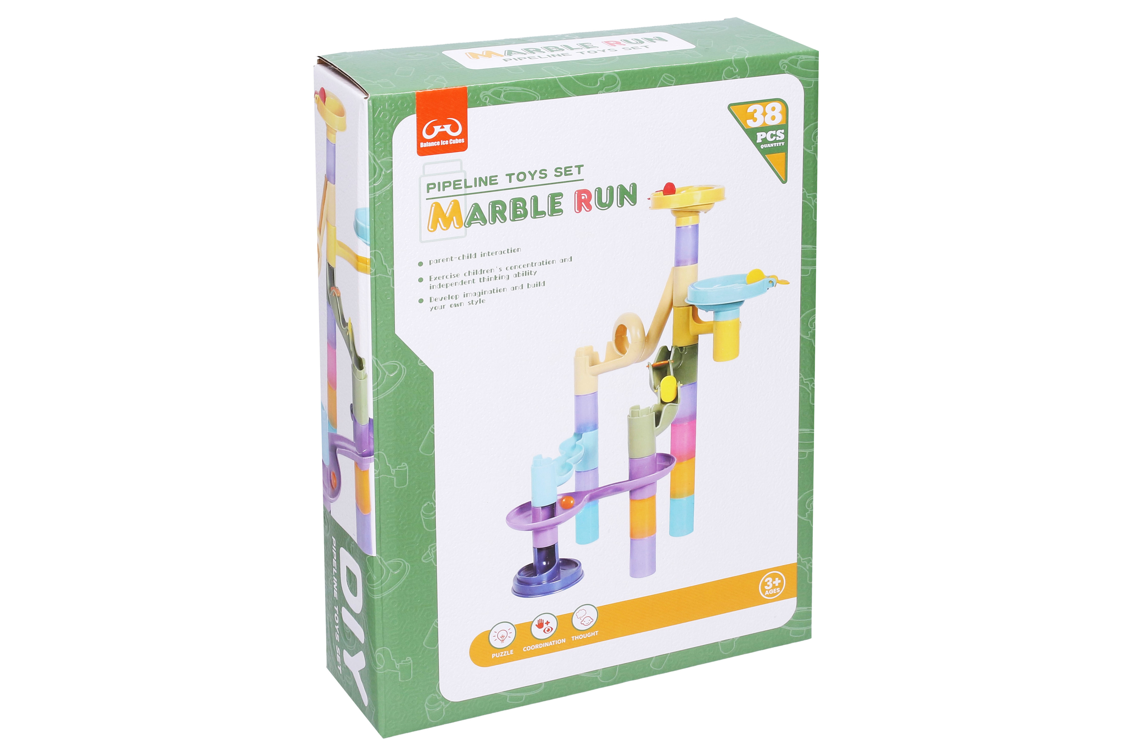 Kuličková dráha stavebnice. Balení obsahuje 38 dílků, včetně 15 kuliček. číst celé