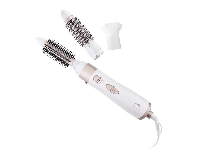 Kartáč disponuje přepínačem mezi 2 rychlostmi proudění a 2 teplotami vzduchu. Jeho provoz tak snadno přizpůsobíte vašemu typu vlasů i představě o výsledném účesu. Délka přívodního kabelu je 1,75 metrů. Kartáč Fenité je velmi oblíbený pro svou funkci ionizace, která zabraňuje krepatění vlasů. Vhod přijde také funkce CARE pro okamžité snížení teploty proudícího vzduchu. Napájecí kabel je otočný pro pohodlnou manipulaci všemi směry. Součástí balení je kulatý kartáč o průměru 21 mm, ondulační nástavec o průměru 33 mm a koncentrátor. Všechny tyto doplňky jsou snadno vyměnitelné. Součástí balení je také praktické cestovní pouzdro pro uložení přístroje včetně příslušenství. Můžete si jej tak vzít s sebou na cesty a udržet si perfektní účes, ať jste kdekoliv.