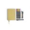 Kreativní sada Bullet journal obsahuje zápisník a výrobky Tombow, které jsou nepostradatelné pro vytvoření vlastního Bullet journalu. Při jeho zdobení vám pomůže také návod s radami a tipy. Sada i návod byly vytvořeny Sarou Vázquez (@mylittlejournalblog). Sada obsahuje: - Oboustranné fixy ABT Dual Brush Pen se dvěma hroty: tenkým pro přesné linky a širším, štětcovým pro barvení větších ploch. Odstíny inkoustu na vodní bázi lze míchat a používat jako akvarelové barvy (odstíny: ABT-133, 673, 803, 991). - Fix Fudenosuke s elastickým štětcovým hrotem, skvělým pro kaligrafii (WS-BH - tvrdý hrot). - Zvýrazňovač MONO edge se dvěma hroty: širokým seříznutým hrotem (šířka stopy 3,8 mm) a velmi tenkým kulatým hrotem (šířka stopy 0,4 mm). Hroty jsou vybaveny plastovým chráničem, který zajišťuje, že pravítka a šablony zůstanou čisté (WA-TC96). - Elegantní mikrotužku MONO graph s inovačním systémem vysouvání tuhy: tuha se vysouvá zatřesením tužkou nebo stisknutím spony. Vytažením spony nahoru se tuha zastaví. Tuhu lze doplňovat (tvrdost HB). Ideální pro poznámky a náčrtky v bullet journalu (SH-MG54). - Zápisník značky Brandbook ve formátu A5 s pevnou lněnou vazbou v pastelové žluté barvě. Papír s gramáží 120 g/m2 zabraňuje prosakování inkoustu. Obsahuje 160 číslovaných zářivě bílých tečkovaných stran. Pro snadnou orientaci obsahuje 2 záložky a také gumičku, aby z deníku nic nevypadlo. - stručný návod v angličtině od Sary Vázquez (@mylittlejournalblog) obsahující rady a nápady, jak si deník vyzdobit a strukturovat jej pomocí výrobků Tombow.