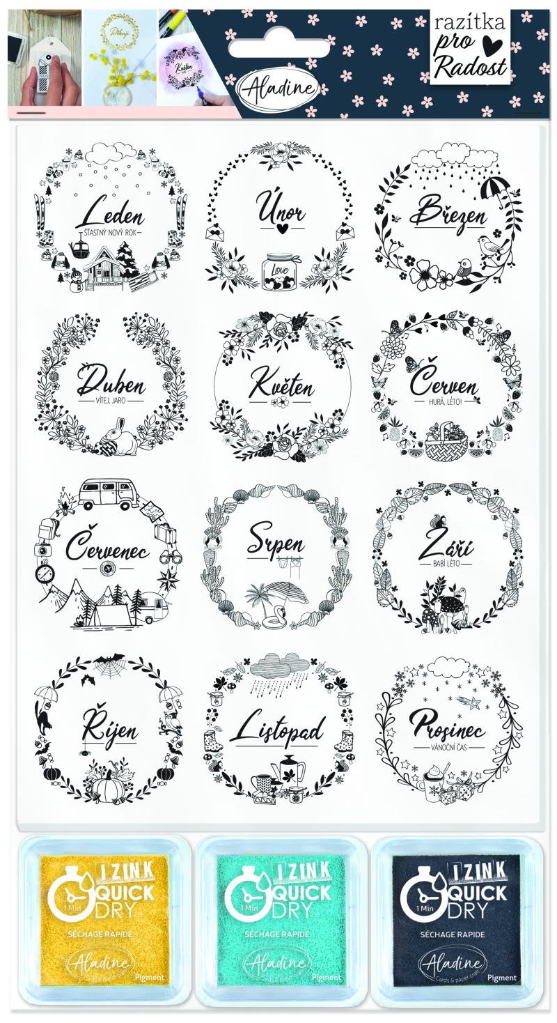 - Obsahuje 12 kusů diářových razítek s motivy měsíců