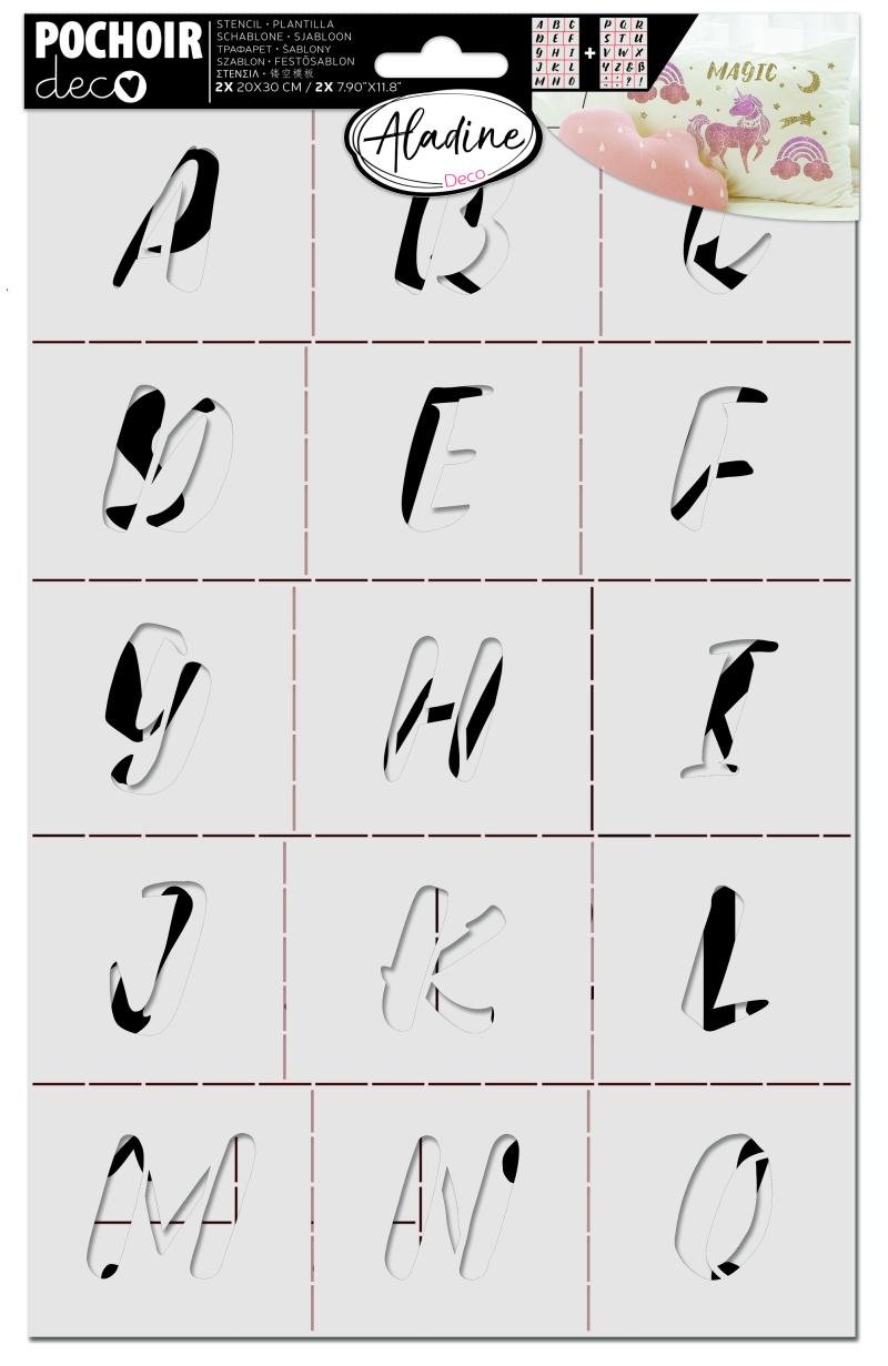 Šablona Abeceda je ideální k tvorbě vlastních nápisů na textil, ale i na další drobné projetky, např. označení krabiček a pořadačů. Jednotlivá písmenka oddělte a seskládejte vybraný nápis. Už nemusíte čekat, až vám jedno písmeno zaschne, abyste mohli posunout šablonu o jedno písmeno dál. Písmena můžete přilepit lepidlem na šablony nebo maskovací páskou. Na textil použijte klasickou textilní barvu a písmeny vytupujte, nebo použijte barvu ve spreji. Důkladně zažehlete. Na všechny osttaní materiály je ideáln karylová barva. Písmena ještě za mokra umyjste vodou. Velikost písmena: