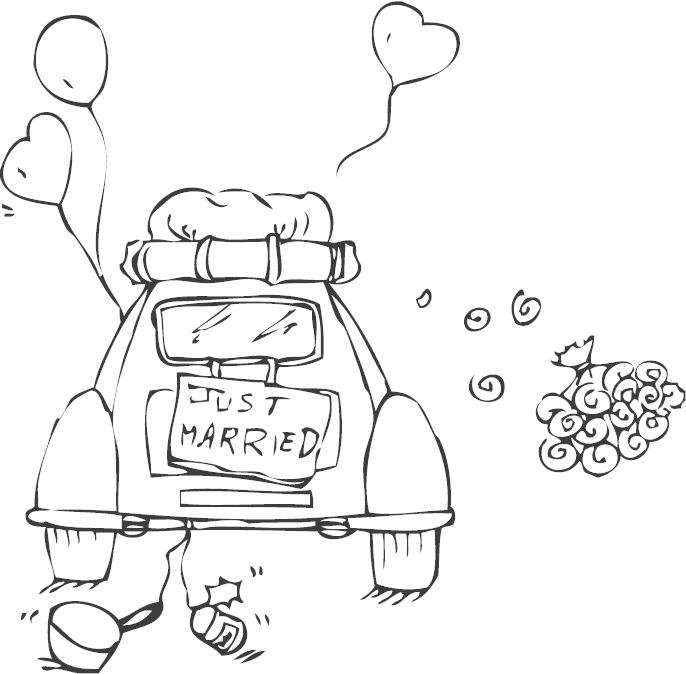 Dřevěné razítko Aladine velikost F - svatební cesta s kyticí