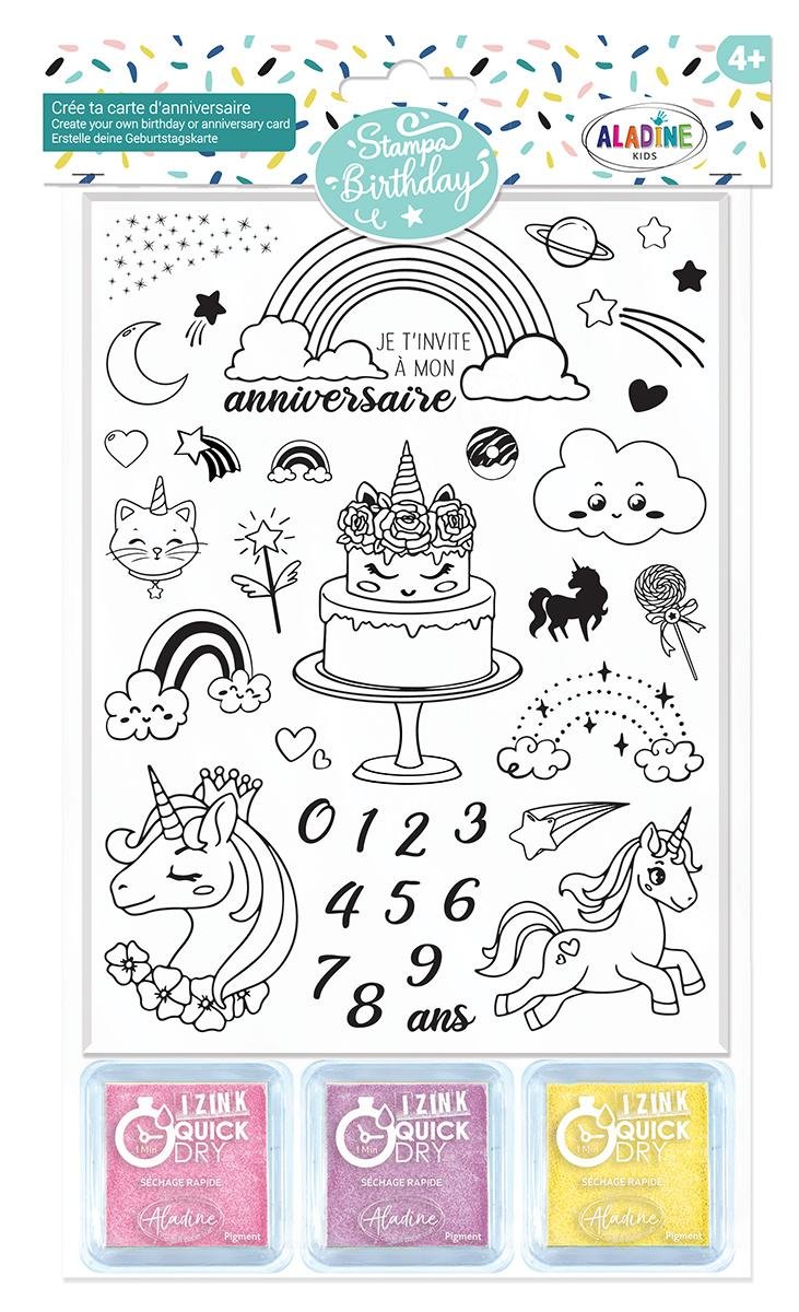 Kreativní razítka pro děti v přehledném rámečku. Ideální na výrobu narozeninových pozvánek, na výtvarnou dílnu i hry na oslavu, na výrobu výslužek, na narozeninouvou výzdobu. Razítka mají široké využití v procvičování počítání, vybarvování, vystřihování. Mají široké využití pro další výtvarné aktivity: potisk textilu, dekorace keramiky, hodí se do samotvrdnoucích hmot i do slaného těsta. Souprava obsahuje také 3 barevné razítkovací polštářky. Rozměr platíčka: 20 x 15 cm.