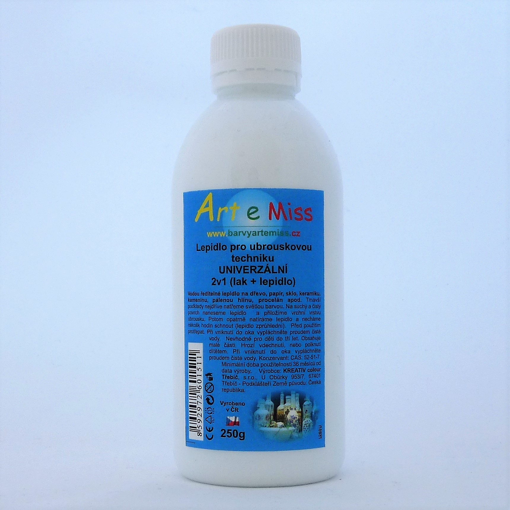 Speciální akrylové lepidlo na ubrouskovou techniku ARTEMISS je ideální volbou pro všechny milovníky kreativního tvoření. Díky své schopnosti pevně přichytit motiv z ubrousku a současně nezžloutnout v průběhu času dosáhnete krásného, trvanlivého výsledku. Po zaschnutí získá lepidlo lesklý a voděodolný povrch, který ochrání vaše výtvory i při použití v interiéru i venku.