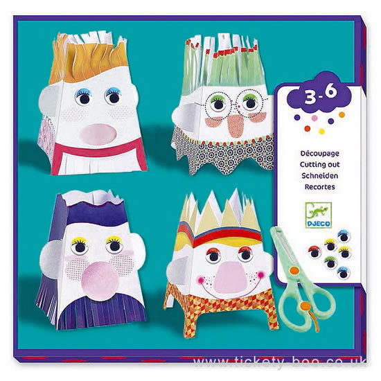 Děti nejprve vytvoří z papíru jednotlivé obličeje a pak nůžkami vystříhají různé bláznivé účesy. Sada obsahuje čtyři druhy oblič...