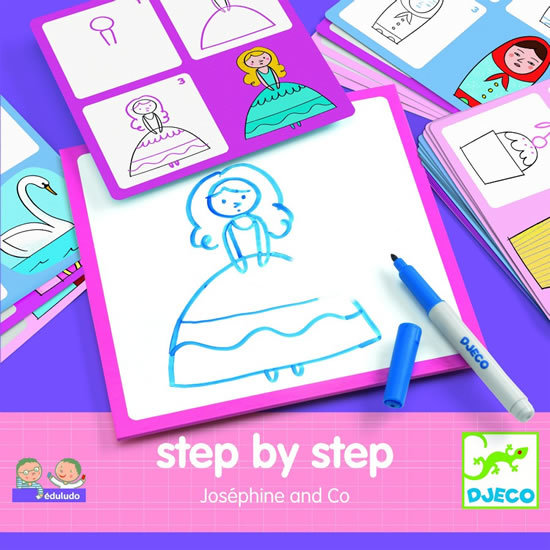 Podpořte kreativitu a motoriku vašeho dítěte zábavným a jednoduchým způsobem! Sadu Djeco Krok za krokem - Josephine si vaše děti zamilují díky hravému kreslení podle návodů, které rozvíjí jejich umělecké schopnosti i trpělivost.